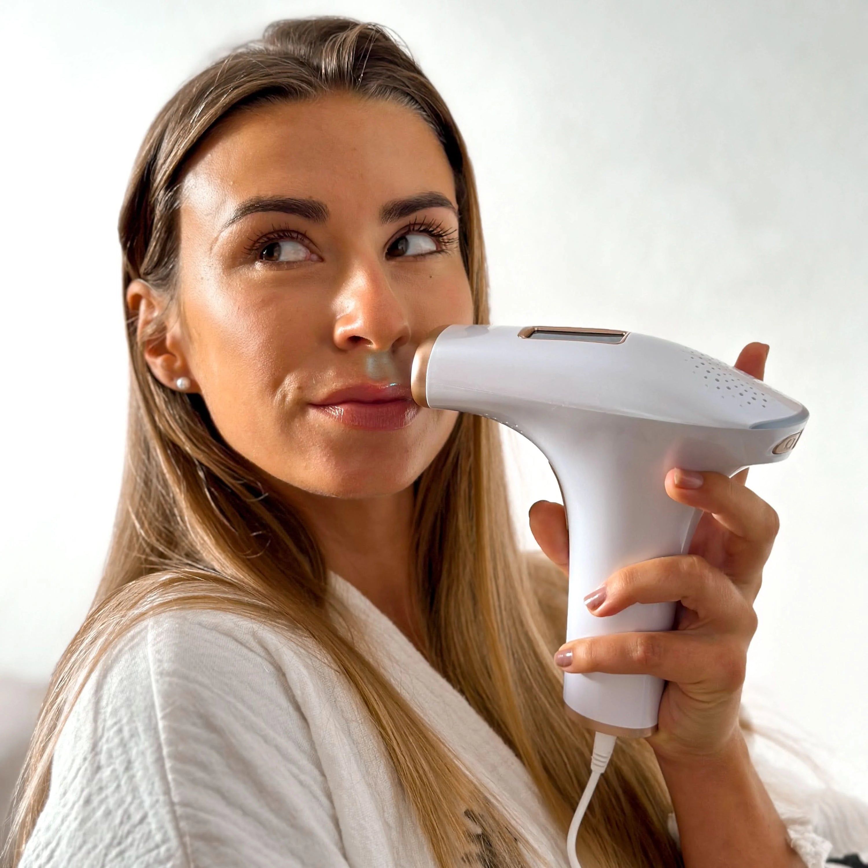Die Behandlung ist vollkommen schmerzfrei. Du spürst höchstens ein leichtes Wärmegefühl auf der Haut – kein Ziepen, kein Brennen, keine Hautirritationen wie bei anderen Methoden.